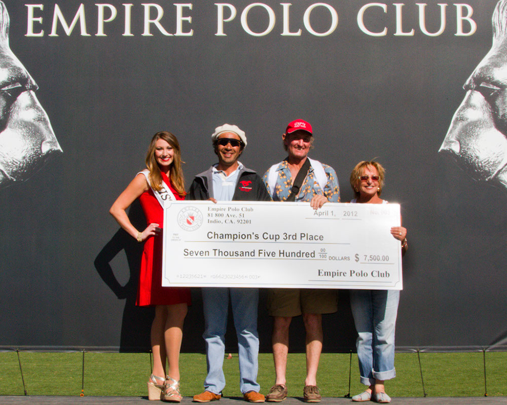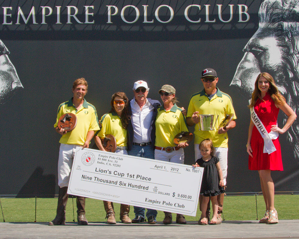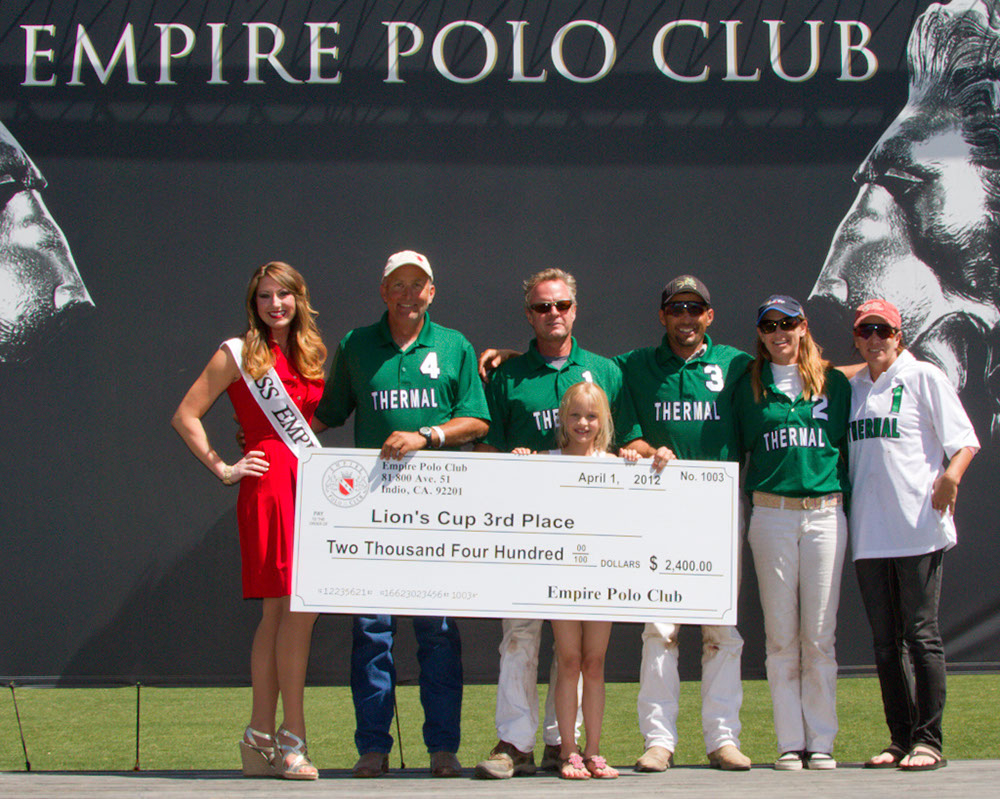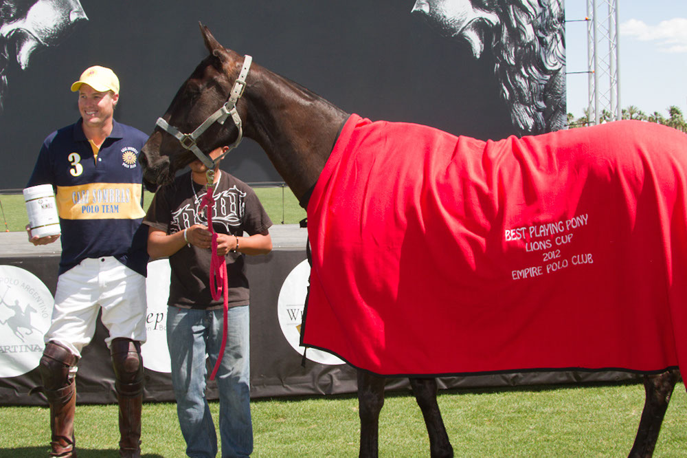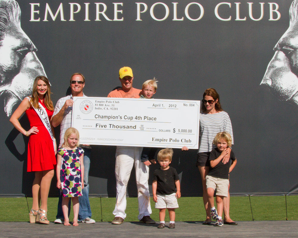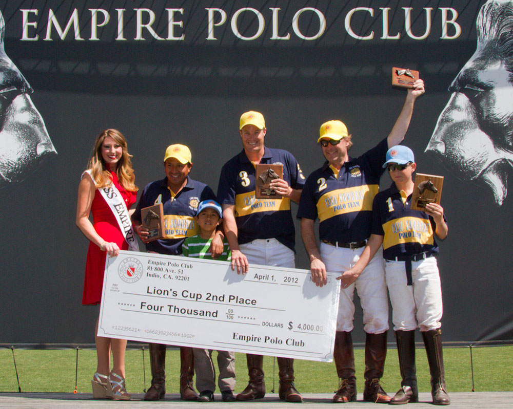 Jesse Bray, substituting for an injured Ernie Ezcurra, scored ten goals as Barrossa (Erik Wright, Jef Graham, Santiago Trotz and Jesse Bray) smothered Trinity (Rick Paicius, Robin Paicius, Clemente Zavaleta and Agustin Zavaleta) in the finals of the 2012 Champions Cup finals at the Empire Polo Club in Indio, California Sunday afternoon.
