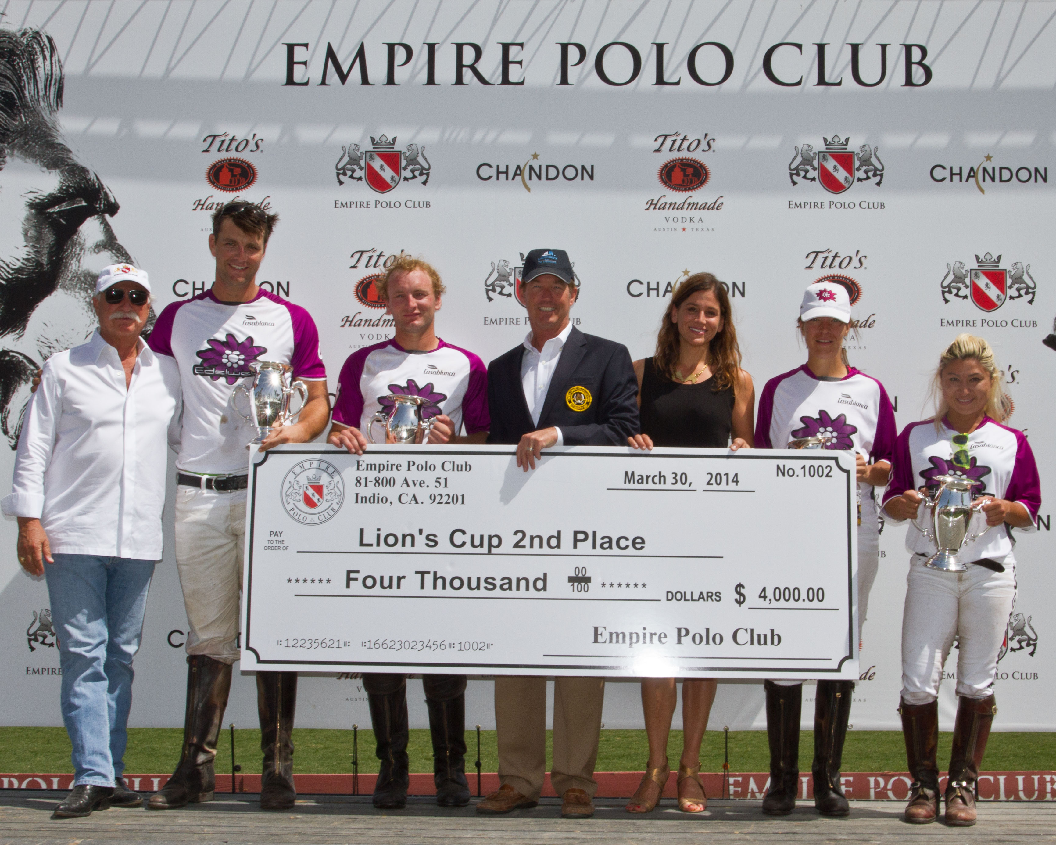 Buffalos rushed in with two unanswered goals in the first chukker off of the mallets of Blake and Huddleston. Edeleweiss regrouped and came alive in the second chukker with back-to -back goals by Muller. Blake kept Buffalos leading the charge with a point from the field. Muller maintained a close tail on them with two more penalty conversions in the second chukker. Blake and Huddleston each converted a penalty in the third answered by two more penalty conversions by Muller for Edelweiss. Muller continued to edge forward with another conversion in the fourth. Blake kept the Buffalos charging ahead with a penalty conversion, but Edelweiss took control of the chukker when Petersen scored two goals from the field and another point from a penalty conversion. Edelweiss was ahead by .5 heading into the fifth and final chukker. Both teams rallied hard, but Edelweiss could not stop the Buffalos. The Buffalos won $12,000 and the title of the 2014 Lions Cup.