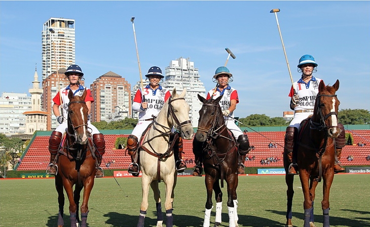 With a rain delay of one day – the ladies were ready to play. Photographers were ready to take many pictures of the ladies since this was an inaugural event even though the 20,000 capacity stadium was far from full. The ladies had their horses in order and coach Susan Stovall gave them a pep talk. The Empire Polo-USA team was rated at 21 goals (a system that Argentina has organized for ladies completion) and the Team Argentina was rated at 18. The players for the home team were Maria Bellende (2), Annabelle Winterhalder (1), Guadalupe Strade, (A) and Emilia Malviccion (A). The Argentine team had a few fouls at the beginning of the match and enabled the Empire Polo-USA team to even the match at halftime 6 to 6. Hale making the fouls shots for the USA team including a penalty 4 soaring through the uprights. Halftime was only 5 mintues , part of the Argentine rules, which kept the Empire ladies looking for their grooms and horses as some of the ponies had only been stick and balled. Outhier kept Bellande, their best player, under control giving both McCoy and Weber a chance to each make a goal. Sunny Hale came through with a couple from the field ending the game 11-7.