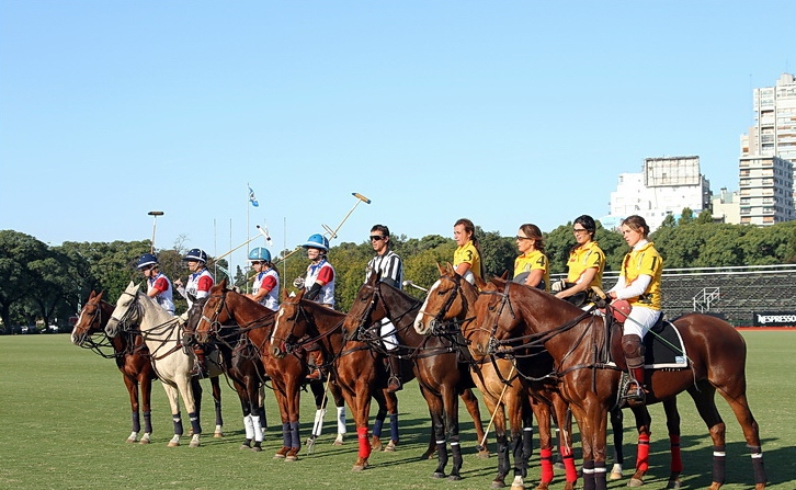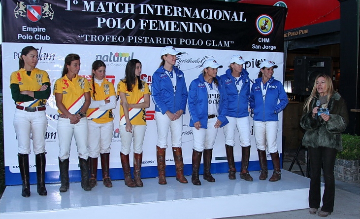 Claudia Pistarini, founder of POLOGLAM, and Mr. Alex Haagen, owner of Empire Polo Club in California, created a one-of-a kind event and first ever International Ladies polo match at the prestigious Palermo polo field in the center of Buenos Aires on April 30, 2012. The San Jorge Polo Club and President Jorge Apa hosted the polo team of Sunny Hale, Kristy Outhier, Kate Weber and Malia McCoy for the week prior to the test match.