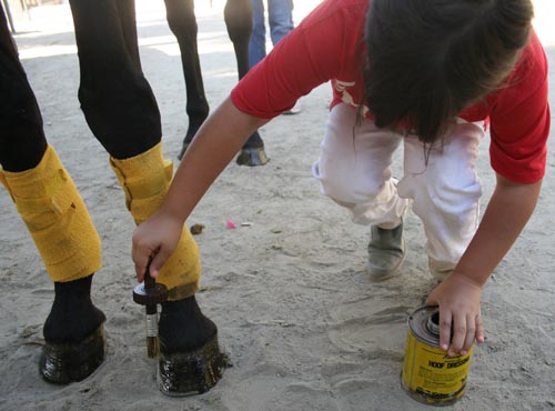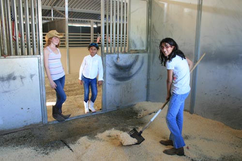The beginning session focused on how to properly bed down a horse and stall preparation in a polo barn. Players learned how to spread shavings, place water and grain buckets, how to handle a manure pitchfork and wheel barrel. Those of us who spend a lot of time working with horses can be quite surprised at how important the simplest information might register with a novice horse person. The first night a water bucket was used to deposit horse droppings in one of the player’s stalls. When I asked my young player where her horse’s water was, I got a look of bewilderment. The lesson for her that evening was horses need water. The lesson to the director was to double check everything and don’t take anything for granted.