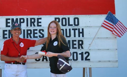 During the awards presentation, each player received a scrolled parchment Certificate of Completion for their participation in Empire’s Youth Polo Summer Camp Program. It itemized the areas of proficiency each player achieved in the sport of Polo all of which our camp activities addressed.